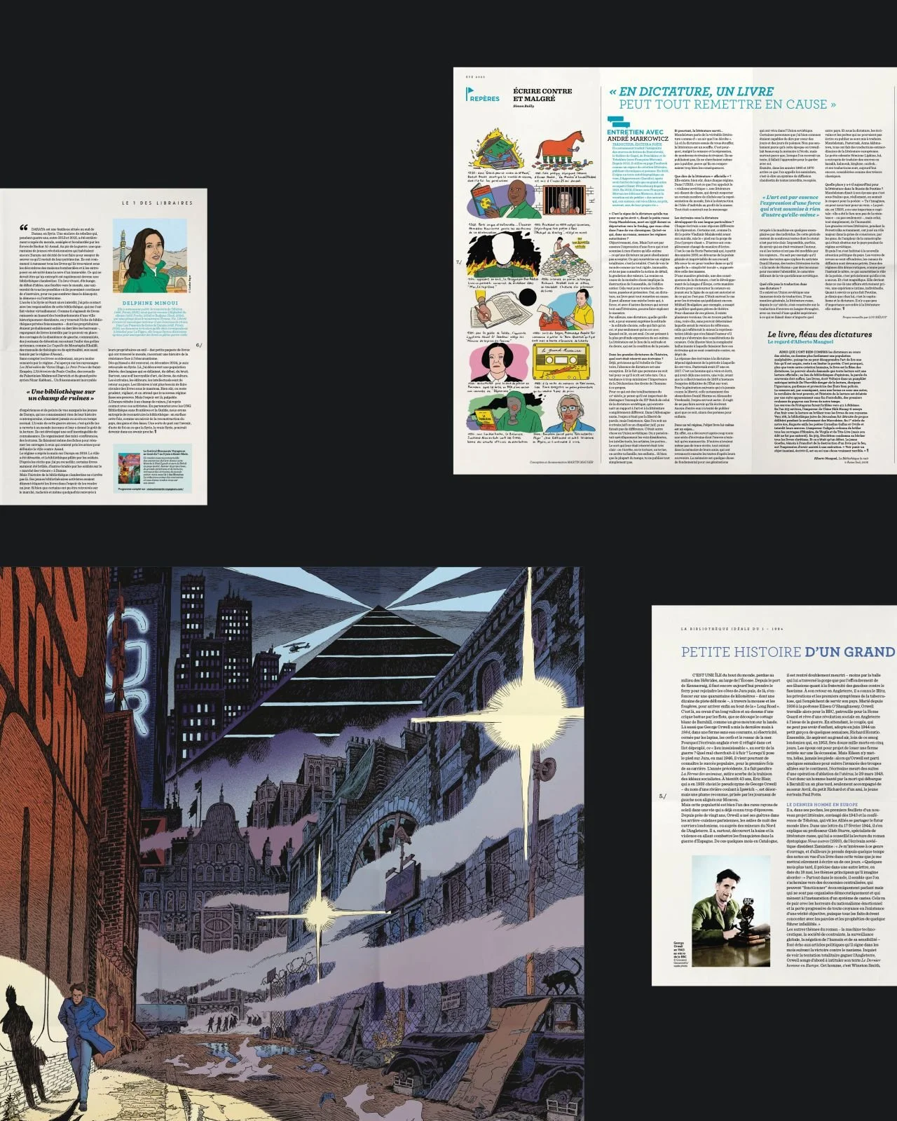 On trouve quoi dans ce journal ? Un extrait de 1984 de George Orwell + un poster de 1984 de George Orwell + des interviews de Lauren Groff, André Markowicz, Delphine Minoui et Paul Lynch + une nouvelle de Primo Levi + des illustrations et dessins de Vincent Perriot, Maxime Mouysset, Candice Roger, Simon Bailly, Marco Galli et Jochen Gerner + des textes qui donnent la pêche.